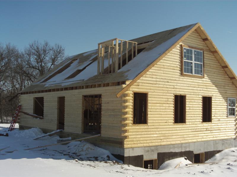 12/12/09 The last of the logs were stacked this last weekend, now on to the interior framing and roof. Pictured Below is Jason. He is the head of our framing crew.